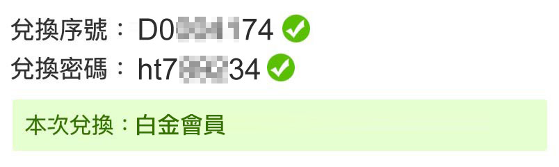 - 兑换成功后请至“会员中心”体验白金会员服务。